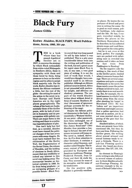 Review of: Kodwo Abaidoo. Black fury. Accra: Woeli Publications, 1995