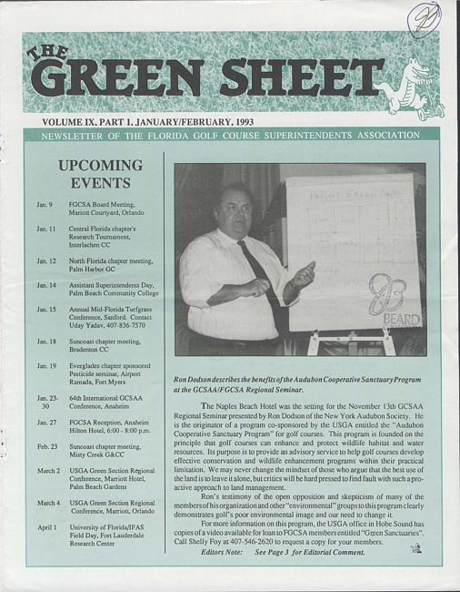 The green sheet. Vol. 9 no. 1 (1993 January/February)
