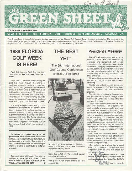 The green sheet. Vol. 4 no. 2 (1988 March/April)