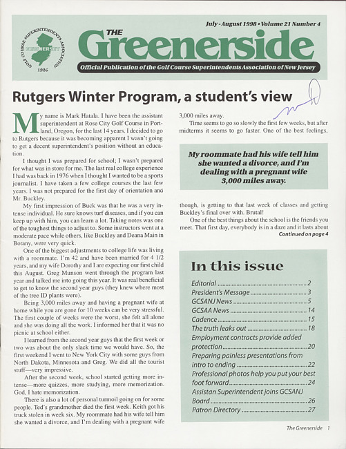 The greenerside. Vol. 21 no. 4 (1998 July/August)