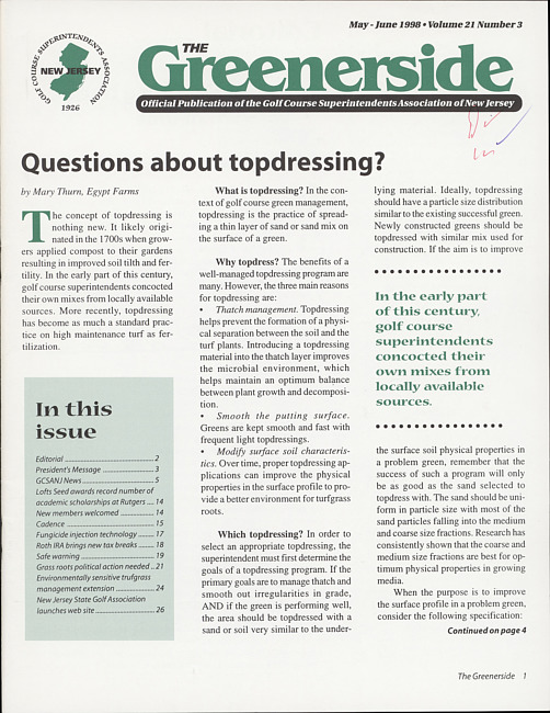 The greenerside. Vol. 21 no. 3 (1998 May/June)