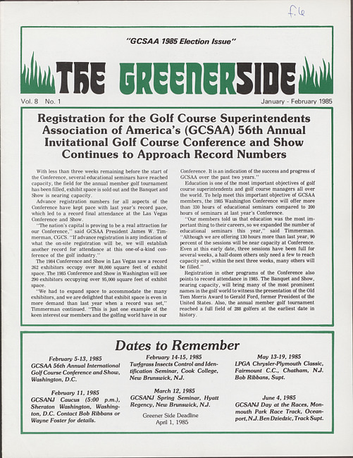 The greenerside. Vol. 8 no. 1 (1985 January/February)
