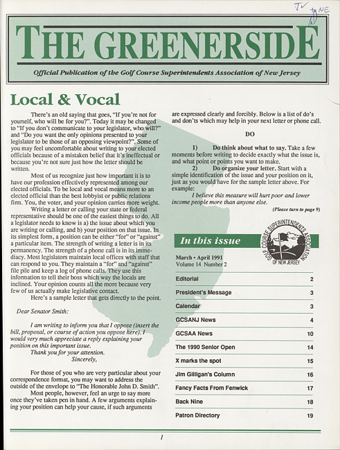 The greenerside. Vol. 14 no. 2 (1991 March/April)