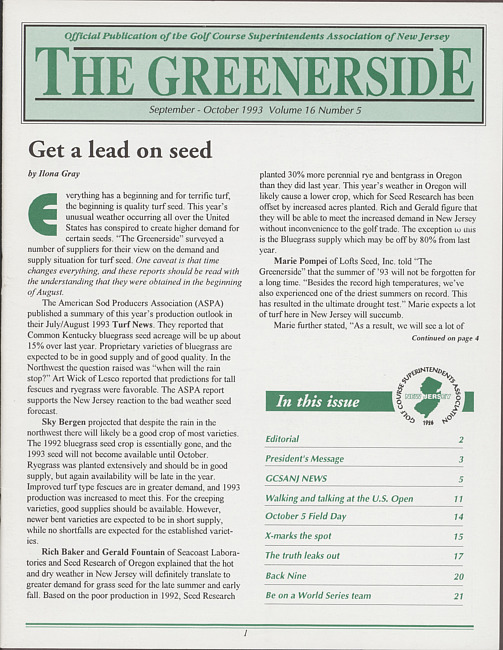 The greenerside. Vol. 16 no. 5 (1993 September/October)