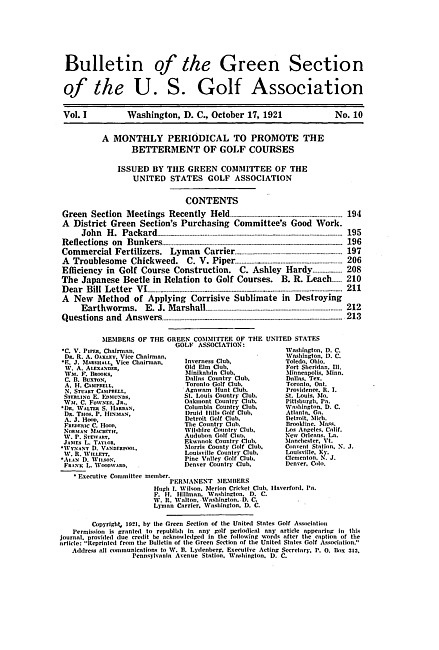 Bulletin of the Green Section of the U.S. Golf Association. Vol. 1 no. 10 (1921 October 17)