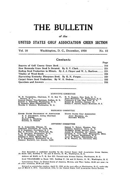 The bulletin of the United States Golf Association Green Section. Vol. 10 no. 12 (1930 December)