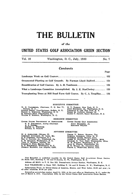 The bulletin of the United States Golf Association Green Section. Vol. 10 no. 7 (1930 July)