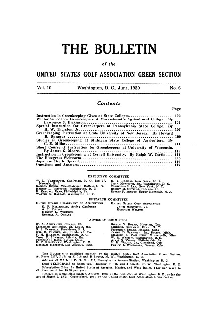The bulletin of the United States Golf Association Green Section. Vol. 10 no. 6 (1930 June)