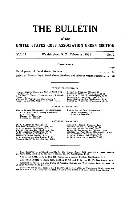 The bulletin of the United States Golf Association Green Section. Vol. 11 no. 2 (1931 February)