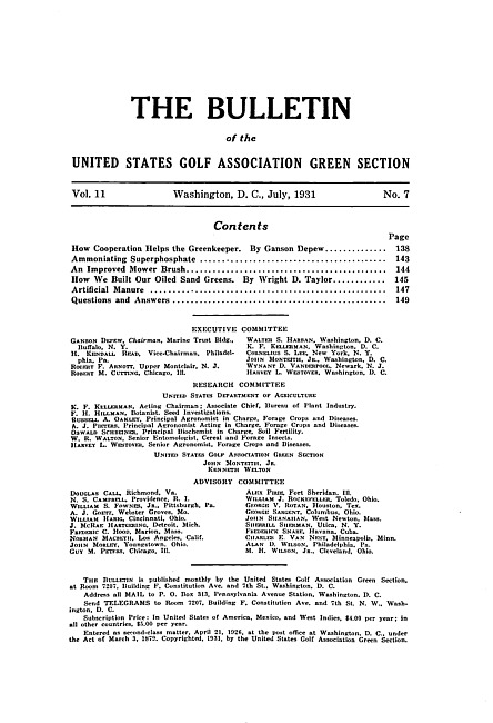 The bulletin of the United States Golf Association Green Section. Vol. 11 no. 7 (1931 July)