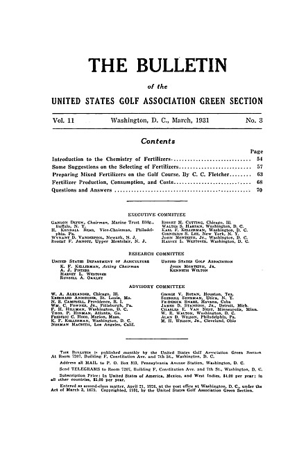 The bulletin of the United States Golf Association Green Section. Vol. 11 no. 3 (1931 March)