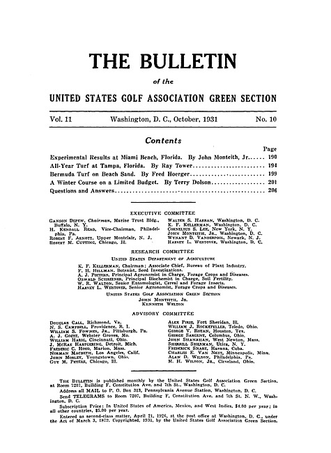 The bulletin of the United States Golf Association Green Section. Vol. 11 no. 10 (1931 October)