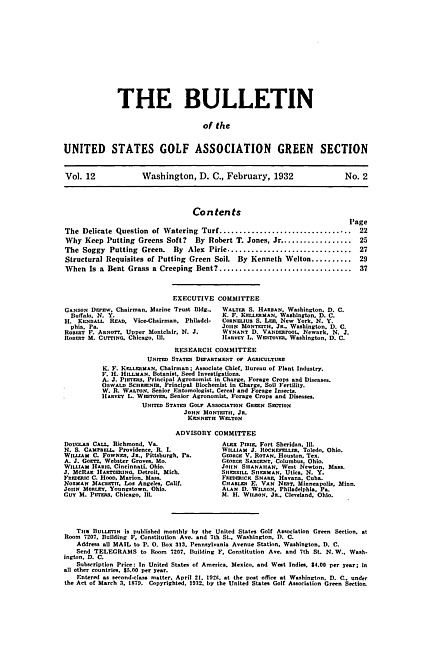 The bulletin of the United States Golf Association Green Section. Vol. 12 no. 2 (1932 February)