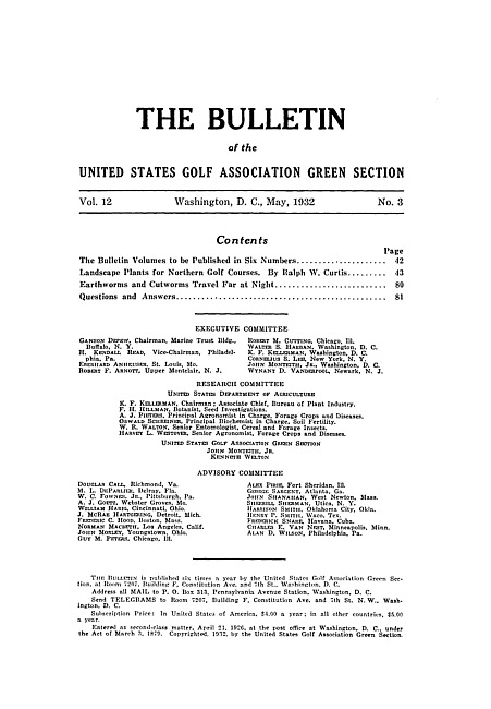 The bulletin of the United States Golf Association Green Section. Vol. 12 no. 3 (1932 May)