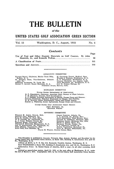 The bulletin of the United States Golf Association Green Section. Vol. 13 no. 4 (1933 August)