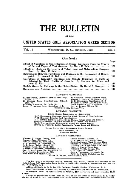 The bulletin of the United States Golf Association Green Section. Vol. 13 no. 5 (1933 October)