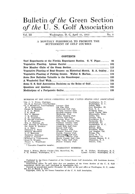 Bulletin of the Green Section of the U.S. Golf Association. Vol. 3 no. 4 (1923 April 21)