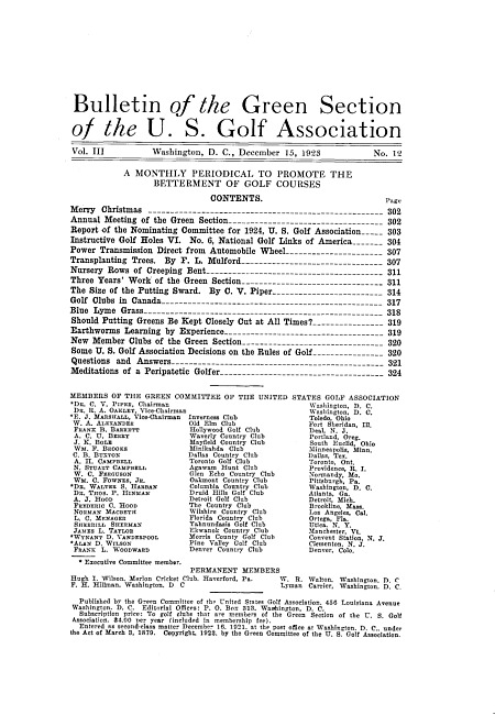 Bulletin of the Green Section of the U.S. Golf Association. Vol. 3 no. 12 (1923 December 15)