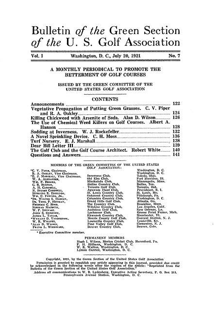 Bulletin of the Green Section of the U.S. Golf Association. Vol. 1 no. 7 (1921 July 20)