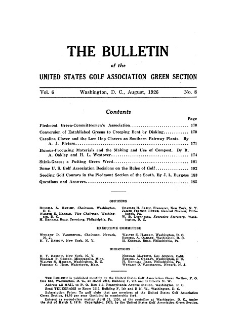 The bulletin of the United States Golf Association Green Section. Vol. 6 no. 8 (1926 August)