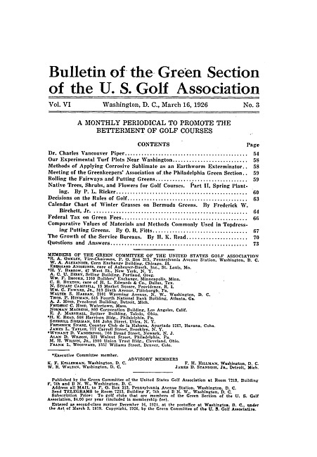 Bulletin of the Green Section of the U.S. Golf Association. Vol. 6 no. 3 (1926 March 16)