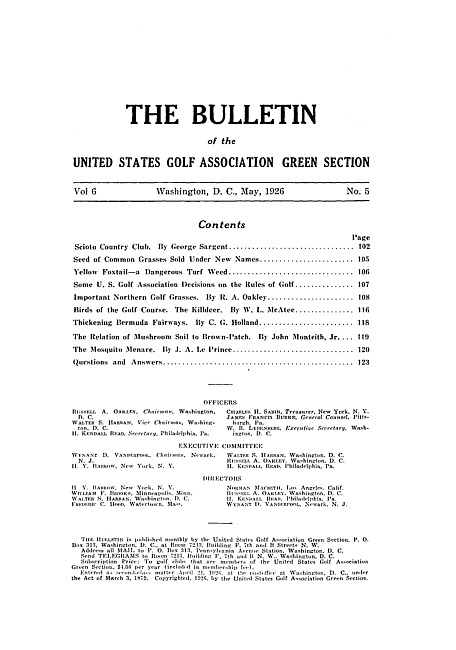 The bulletin of the United States Golf Association Green Section. Vol. 6 no. 5 (1926 May)