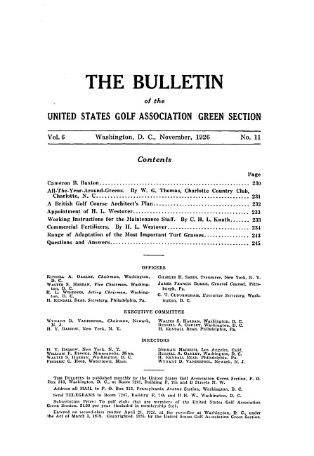 The bulletin of the United States Golf Association Green Section. Vol. 6 no. 11 (1926 November)