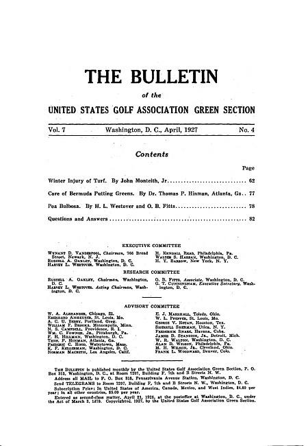 The bulletin of the United States Golf Association Green Section. Vol. 7 no. 4 (1927 April)