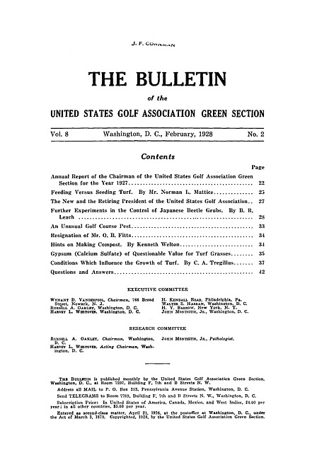 The bulletin of the United States Golf Association Green Section. Vol. 8 no. 2 (1928 February)