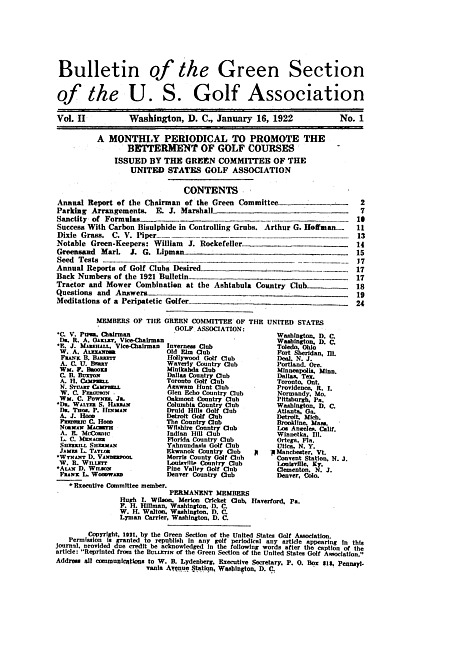 Bulletin of the Green Section of the U.S. Golf Association. Vol. 2 no. 1 (1922 January 16)