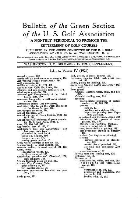 Bulletin of the Green Section of the U.S. Golf Association. Vol. 4, Index (1924 December 15)