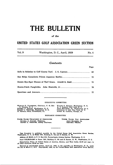 The bulletin of the United States Golf Association Green Section. Vol. 9 no. 4 (1929 April)
