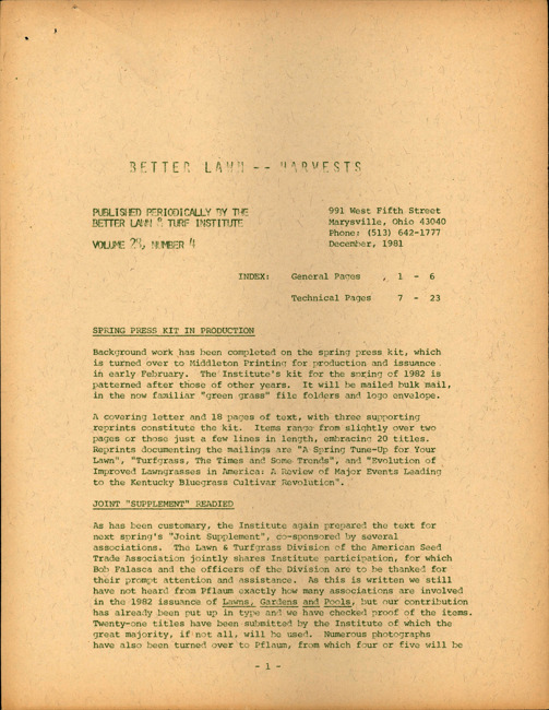 Better lawn harvests. Vol. 28 no. 4 (1981 December)