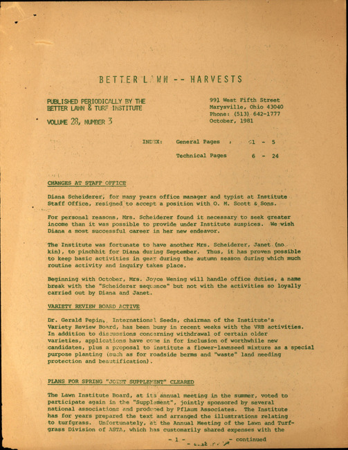 Better lawn harvests. Vol. 28 no. 3 (1981 October)
