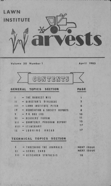 Lawn Institute harvests. Vol. 30 no. 1 (1983 April)