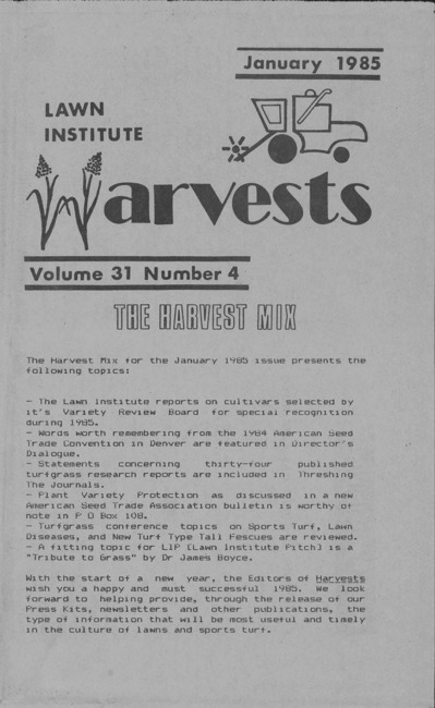 Lawn Institute harvests. Vol. 31 no. 4 (1985 January)