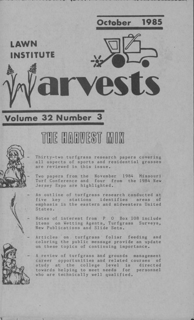 Lawn Institute harvests. Vol. 32 no. 3 (1985 October)