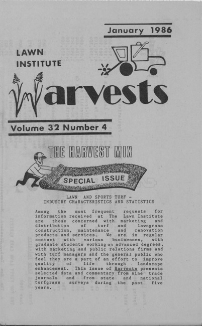 Lawn Institute harvests. Vol. 32 no. 4 (1986 January)