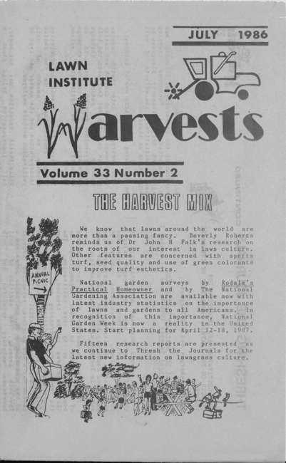Lawn Institute harvests. Vol. 33 no. 2 (1986 July)