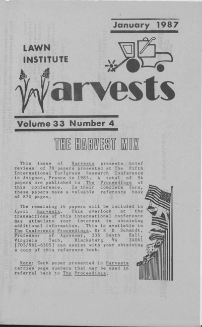 Lawn Institute harvests. Vol. 33 no. 4 (1987 January)