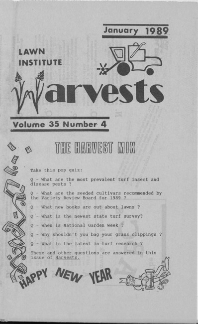 Lawn Institute harvests. Vol. 35 no. 4 (1989 January)