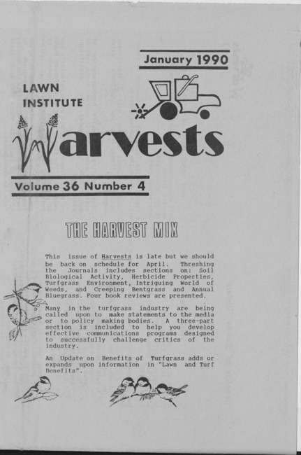 Lawn Institute harvests. Vol. 36 no. 4 (1990 January)