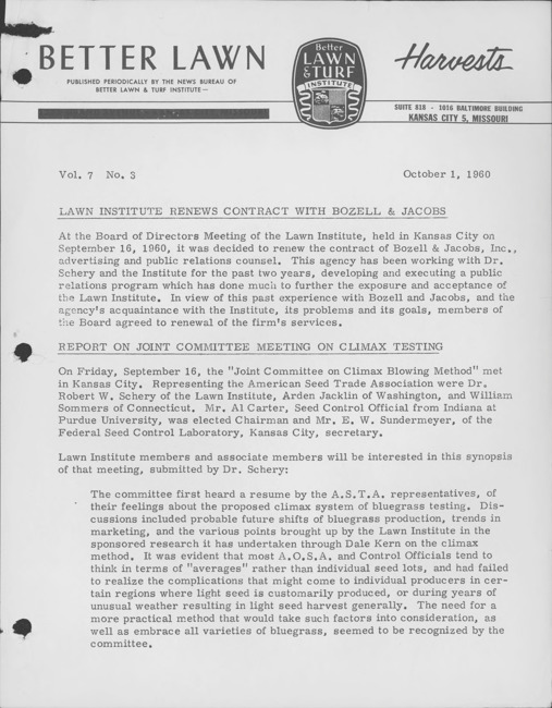 Better lawn harvests. Vol. 7 no. 3 (1960 October 1)