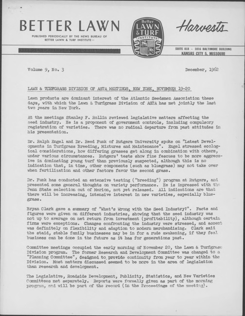 Better lawn harvests. Vol. 9 no. 3 (1962 December)