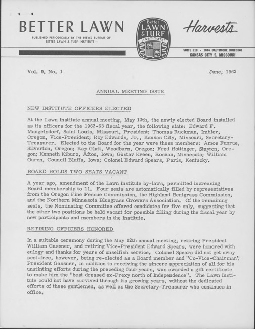 Better lawn harvests. Vol. 9 no. 1 (1962 June)