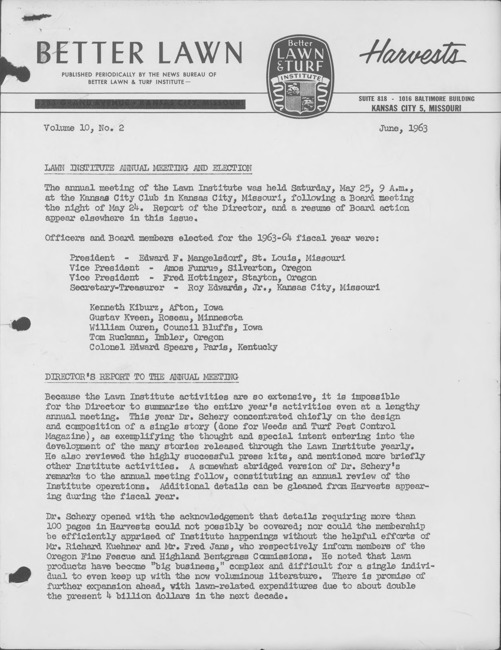 Better lawn harvests. Vol. 10 no. 2 (1963 June)