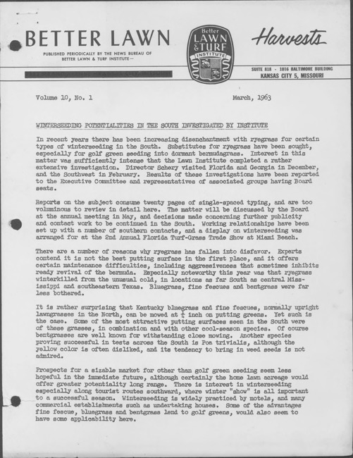 Better lawn harvests. Vol. 10 no. 1 (1963 March)
