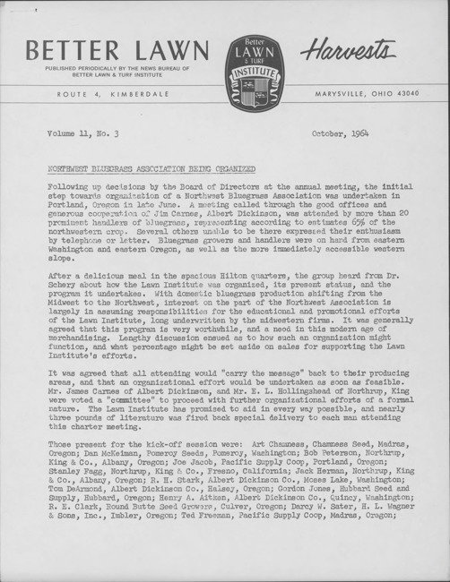 Better lawn harvests. Vol. 11 no. 3 (1964 October)
