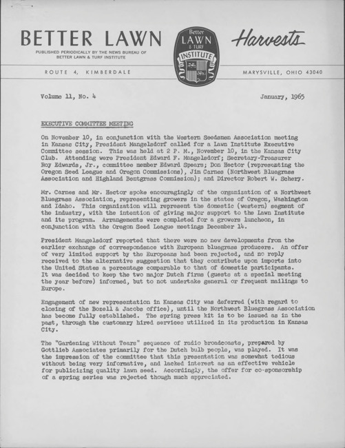 Better lawn harvests. Vol. 11 no. 4 (1965 January)