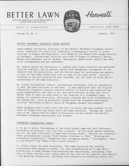 Better lawn harvests. Vol. 12 no. 4 (1966 January)